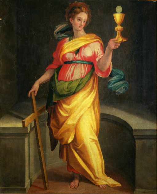 This portable altar, probably realized for the prayers of some noble lay sister, has a central panel with the Holy Family and replicates, with a few variations, a typical composition by Naldini. It is an extremely refined work. In the side panels the two Dominican saints, Dominic and Catherine of Siena, are attributed to the disciple Giovanni Balducci. The two figures differ from the delicate chromatism of the master, characterized by theVirgin’s red gown that stands out against the ochre pervading the scene, showing a fine light and shade research which nearly turns into monochrome.